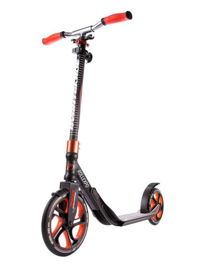 Усиленная вилка позволяет самокату выдержать райдера даже при активном катании, включающем съезды с бордюров. Руль регулируется по высоте в диапазоне 10 см.