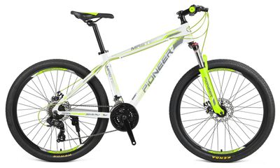 PIONEER MASTER предназначен для комфортного катания в городе и по пересеченной местности (парк, лес). Трансмиссия Shimano для надежного переключения (манетки), передний амортизатор для уверенной езды по неровностям (с блокировкой), дисковые тормоза. Облегченная алюминиевая рама.