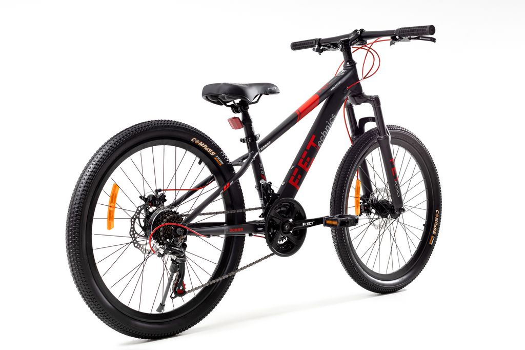 Велосипед FET technics 24" предназначен для комфортного катания в городе и по пересеченной местности (парк, лес). Трансмиссия Shimano для надежного переключения, передний амортизатор для уверенной езды по неровностям, дисковые тормоза, промышленные подшипники.